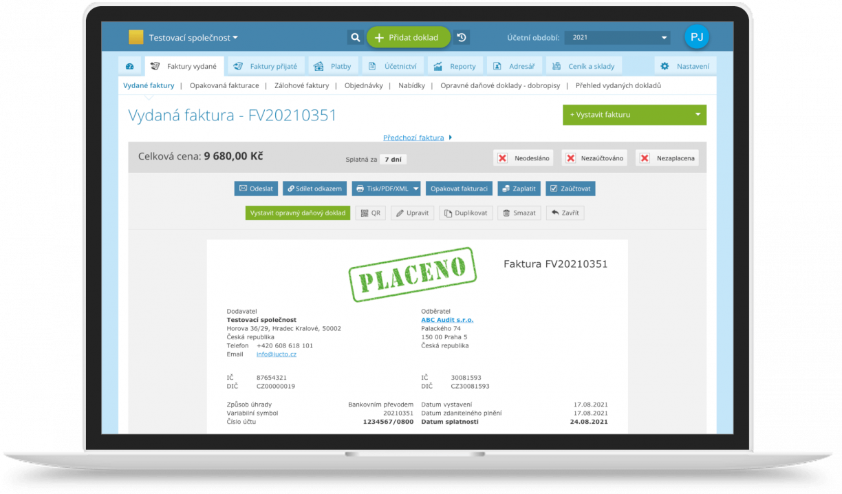 Odesíláte svému zákazníkovi opakovaně každý měsíc stejnou fakturu (pravidelná faktura), například za pronájem prostor? iÚčto má pro toto skvělé řešení – je jím funkce Opakovaná fakturace. Opakovaná fakturace šetří váš čas a paměť. S touto funkcí vždy vystavíte vaše faktury včas a správně. Vystavení dokladu za vás udělá iÚčto automaticky. Tato funkce je k dispozici od tarifu Pokročilý.
